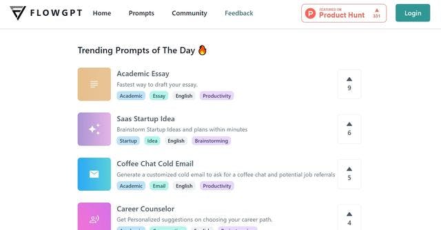 1. Partage d’invites : FlowGPT vous permet de partager les prompts ChatGPT qui ont été les plus utiles dans vos propres tâches.