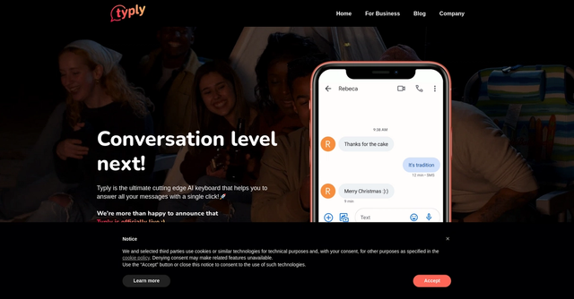 Typly est une application d’intelligence artificielle (IA) conçue pour faciliter et accélérer la réponse à vos messages. Avec Typly, vous pouvez répondre à tous vos messages en un seul clic grâce à un clavier intelligent qui génère automatiquement des phrases adaptées au contexte de la conversation.